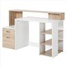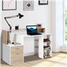This computer desk, is a versatile design, the desktop with two layers of the top design, free office supplies, such as computer is placed on the left side of the cabinet, documents and other important projects can be placed to the right of the multilayer frame structure, can put small items, frame is made of high quality particle board material, have good bearing capacity, make the whole table structure is more stable.