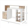 This computer desk, is a versatile design, the desktop with two layers of the top design, free office supplies, such as computer is placed on the left side of the cabinet, documents and other important projects can be placed to the right of the multilayer frame structure, can put small items, frame is made of high quality particle board material, have good bearing capacity, make the whole table structure is more stable. Having this multipurpose desk will make your work life a lot easier.